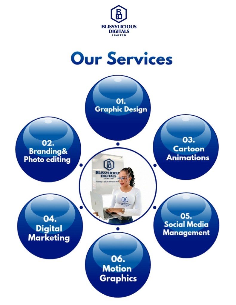 Our services include :brand identity design, logo creation, graphic design, social media management, content creation, motion graphics, cartoon animations, digital marketing, and promotional campaigns tailored to your business goals. We combine creativity with strategy to deliver visually compelling designs, engaging digital experiences, and marketing solutions that connect with your audience, elevate your brand presence, and drive measurable results.